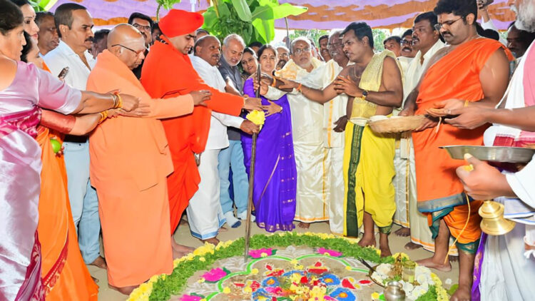 ബെം​ഗളൂരു: അയോദ്ധ്യയിൽ പ്രതിഷ്ഠിച്ച രാംലല്ല വി​ഗ്രഹത്തിനായുി കൃഷ്ണശില കണ്ടെടുത്തയിടത്ത് രാമക്ഷേത്രം ഉയരുന്നു. മൈസൂരു ജയപുര ഗുജ്ജെഗൗഡനപുരയിൽ രാമക്ഷേത്ര നിർമാണത്തിനായുള്ള ഭൂമി പൂജ നടത്തി തറക്കല്ലിട്ടു.