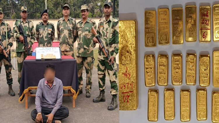 അതിർത്തി സുരക്ഷാ സേനയക്ക് ലഭിച്ച രഹസ്യ വിവരത്തിന്റെ അടിസ്ഥാനത്തിലാണ് സംഘം പ്രദേശത്ത് പരിശോധന നടത്തിയത്. 2.19 കോടി വിലമതിക്കുന്ന സ്വർണമാണ് പ്രതിയിൽ നിന്നും പിടികൂടിയത്. ബംഗ്ലാദേശിൽ നിന്നും ഇന്ത്യയിലേക്ക് സ്വർണം കടത്താൻ ശ്രമിക്കുന്നതിനിടെ പിടികൂടുകയായിരുന്നു.