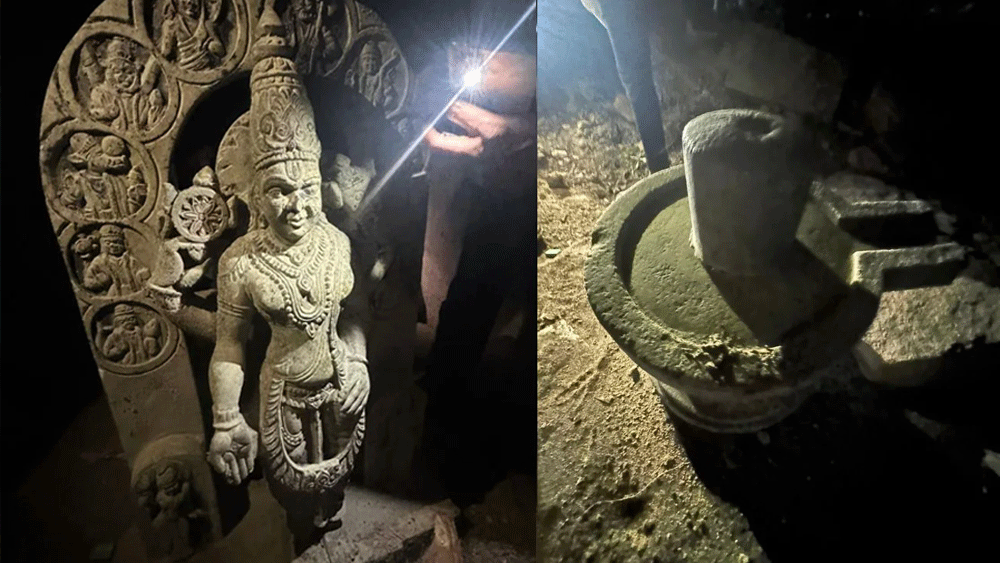 രാലല്ലയോട് സാമ്യം; കൃഷ്ണ നദീതടത്തിൽ നൂറ്റാണ്ടുകൾ പഴക്കമുള്ള വിഷ്ണു വിഗ്രഹവും ശിവലിംഗവും കണ്ടെടുത്തു