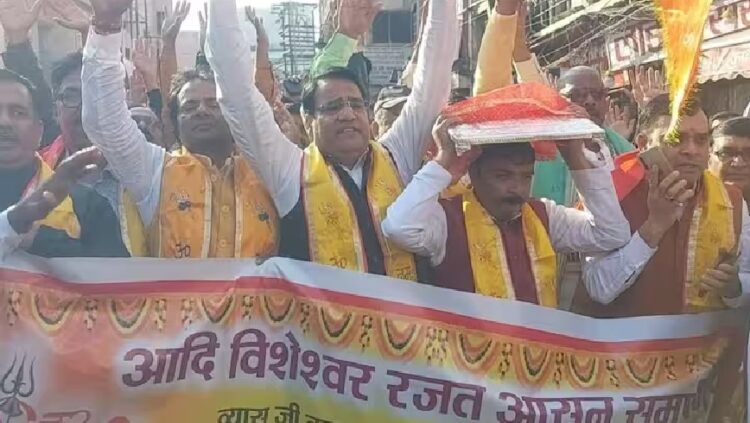 വെള്ളിയാഴ്ച വൈകുന്നേരം 4 മണിയോടെ കാശി വിശ്വനാഥ് ധാം മാർഗിൽ നിന്നുള്ള 50 ഓളം പേർ പാട്ടും നൃത്തവുമായാണ് വെള്ളി സിംഹാസനവും തലയിലേറ്റി എത്തിയത് . ‘ പൂജയ്ക്കുശേഷം വ്യവസായികളായ ഞങ്ങൾക്കിടയിലും വലിയ സന്തോഷമുണ്ട്, ഭഗവാനോടുള്ള ബഹുമാനം പ്രകടിപ്പിക്കുക എന്ന ലക്ഷ്യത്തോടെയാണ്, 1.25 കിലോ വെള്ളി കൊണ്ട് നിർമ്മിച്ച സിംഹാസനം വ്യാസ കുടുംബത്തിന് കൈമാറാൻ ഞങ്ങൾ ഇവിടെ എത്തിയത് . ഈ സിംഹാസനം നിലവറ പരിപാലിക്കുന്ന വ്യാസ കുടുംബത്തിനാണ് കൈമാറുന്നത്. ‘ വ്യാപാരികൾ പറഞ്ഞു.