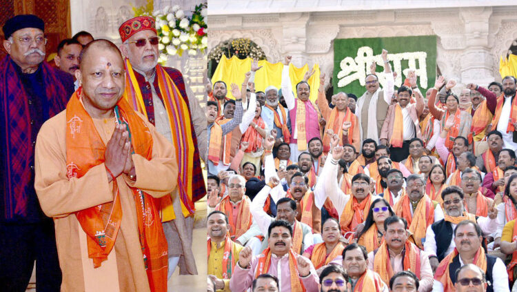 2047 ൽ വികസിത ഭാരതം യാഥാർത്ഥ്യമാകാനുള്ള പ്രാർത്ഥനകൾ ഭഗവാന് മുമ്പിൽ നടത്തിയതായി ഉത്തർപ്രദേശ് ഉപമുഖ്യമന്ത്രി കേശവ് പ്രസാദ് മൗര്യ പറഞ്ഞു. ഇന്ന് എല്ലാ സാമാജികർക്കും ഭഗവാനെ ദർശിക്കാനുള്ള അവസരം ഒരുക്കിയിരുന്നു. സാധിച്ചവരെല്ലാം ഭഗവാന്റെ അനുഗ്രഹത്തിനായ അയോദ്ധ്യയിലെത്തിയതായും അദ്ദേഹം പറഞ്ഞു.