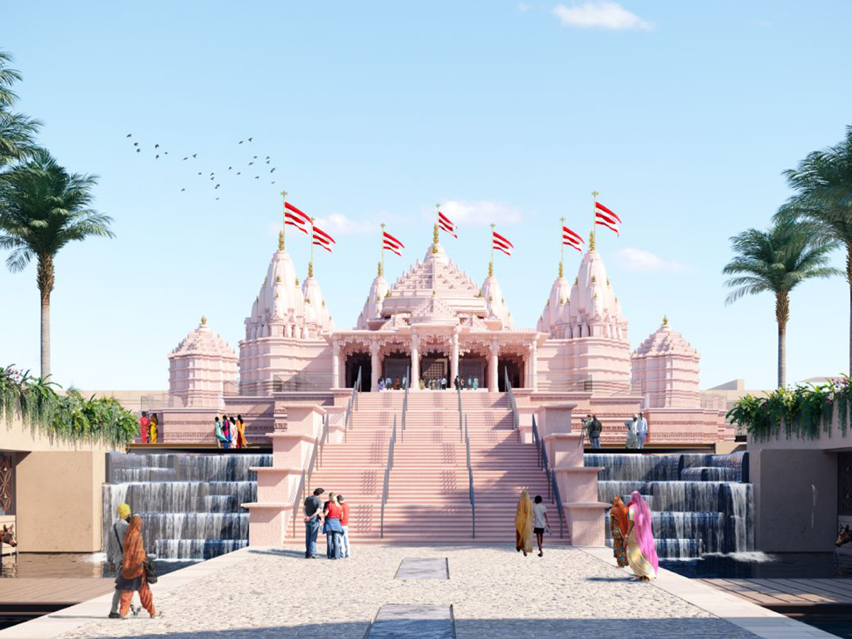 #WATCH | Visuals of the Bochasanwasi Akshar Purushottam Swaminarayan Sanstha (BAPS) Mandir, the first Hindu temple in Abu Dhabi.