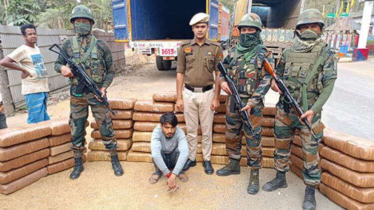 രഹസ്യ വിവരത്തിന്റെ അടിസ്ഥാനത്തിലാണ് അസം റൈഫിൾസ് പ്രദേശത്ത് പരിശോധന നടത്തിയത്. പോലീസും അസം റൈഫിൾസിനോടൊപ്പം പ്രദേശത്ത് പരിശോധന നടത്തിയിരുന്നു. തുടർന്ന് ലഹരിവസ്തു കടത്താൻ ശ്രമിക്കുന്നതിനിടെ യുവാവിനെ പിടികൂടുകയായിരുന്നു. പാന്റിനുള്ളിൽ ഒളിപ്പിച്ച നിലയിലാണ് പ്രതി കഞ്ചാവ് കടത്താൻ ശ്രമിച്ചത്. പിടികൂടിയ ലഹരി വസ്തുക്കൾ കൂടുതൽ അന്വേഷണത്തിനായി പോലീസിന് കൈമാറിയിട്ടുണ്ട്. ‌