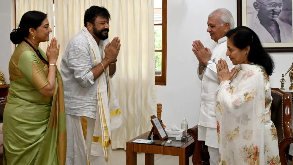 ജയറാമും പാർവതിയും രാജ്ഭവനിൽ; ഗവർ‌ണറുമായി സംവദിച്ച് താരങ്ങൾ