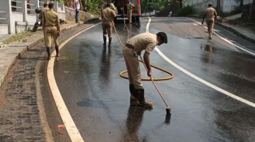 ലോറിയുടെ ഡീസൽ ടാങ്കിൽ നിന്നുള്ള ഒരു വാൽവിൽ ലീക്ക് ഉണ്ടാകുകയായിരുന്നു. എന്നാൽ ഡ്രൈവർ ഇതറിഞ്ഞിരുന്നില്ല. ഒരു കിലോമീറ്ററോളം ദൂരത്തിൽ ഡീസൽ റോഡിൽ ഒഴുകിയിരുന്നു. ലോറിക്ക് പിന്നിലുണ്ടായിരുന്ന ബൈക്ക് യാത്രികൻ സംഭവം ശ്രദ്ധയിൽപ്പെട്ടതിനെ തുടർന്ന് ലോറി തടഞ്ഞ് ഡ്രൈവറോട് വിവരം ധരിപ്പിക്കുകയായിരുന്നു. എന്നാൽ റോഡിൽ പരന്ന ഡീസൽ ടാങ്കിൽ തെന്നിവീണ് ഒരു ബൈക്ക് യാത്രികന് പരിക്കേറ്റിരുന്നു.