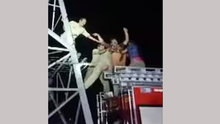 കയ്യിൽ പെട്രോളും പിടിച്ചാണ് ഇയാൾ ടവറിലേക്ക് വലിഞ്ഞു കയറിയത്. അഗ്നിശമന സേന ഇയാളെ താഴെയിറക്കാൻ ശ്രമിച്ചെങ്കിലും ആദ്യം ഇയാൾ അതിന് കൂട്ടാക്കിയില്ല. താൻ പ്രണയിക്കുന്ന യുവതിയെ സ്ഥലത്തെത്തിച്ചാൽ മാത്രമേ താഴെ ഇറങ്ങൂ എന്നാണ് ഇയാൾ പറഞ്ഞത്. തുടർന്ന് അപകടം ഒഴിവാക്കാനായി വൈദ്യുതി ബന്ധം വിച്ഛേദിക്കുകയും പോലീസ് ഭാര്യയേയും കാമുകിയേയും സ്ഥലത്തെത്തിക്കുകയും ചെയ്തു. കാമുകി താഴെ ഇറങ്ങി വരാൻ ആവശ്യപ്പെട്ടതിനെ തുടർന്ന് ഇയാളെ അഗ്നിശമന സേന സമാധാനപ്പെടുത്തി താഴെ ഇറക്കി. ഇയാൾക്കെതിരെ പൊതുമുതൽ നശിപ്പിക്കാൻ ശ്രമിച്ചതുമായി ബന്ധപ്പെട്ട് ജാമ്യമില്ലാ കേസുകൾ ചുമത്തി അറസ്റ്റ് ചെയ്തതായി പോലീസ് അറിയിച്ചു.