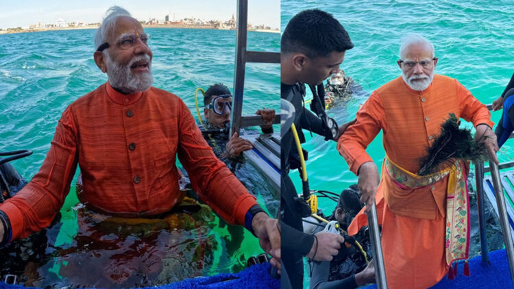 ഗാന്ധിനഗർ: ഭഗവാൻ ശ്രീകൃഷ്ണന്റെ പുണ്യഭൂമിയായ ഗുജറാത്തിലെ ദ്വാരക നഗരി സന്ദർശിച്ച് പ്രധാനമന്ത്രി നരേന്ദ്രമോദി. ദ്വാരകാ പുരിയിലെത്തിയ പ്രധാനമന്ത്രി സ്കൂബ ഡൈവിലൂടെയാണ് ആഴക്കടലിലെ അതിമനോഹര ദൃശ്യങ്ങൾ ആസ്വദിച്ചത്. നാവികസേനയുടെ മുങ്ങൽ വിദഗ്ധരോടൊപ്പമാണ് പ്രധാനമന്ത്രി കടലിലിറങ്ങിയത്. ഇതിന്റെ ചിത്രങ്ങൾ അദ്ദേഹം എക്സിൽ പങ്കുവച്ചു.