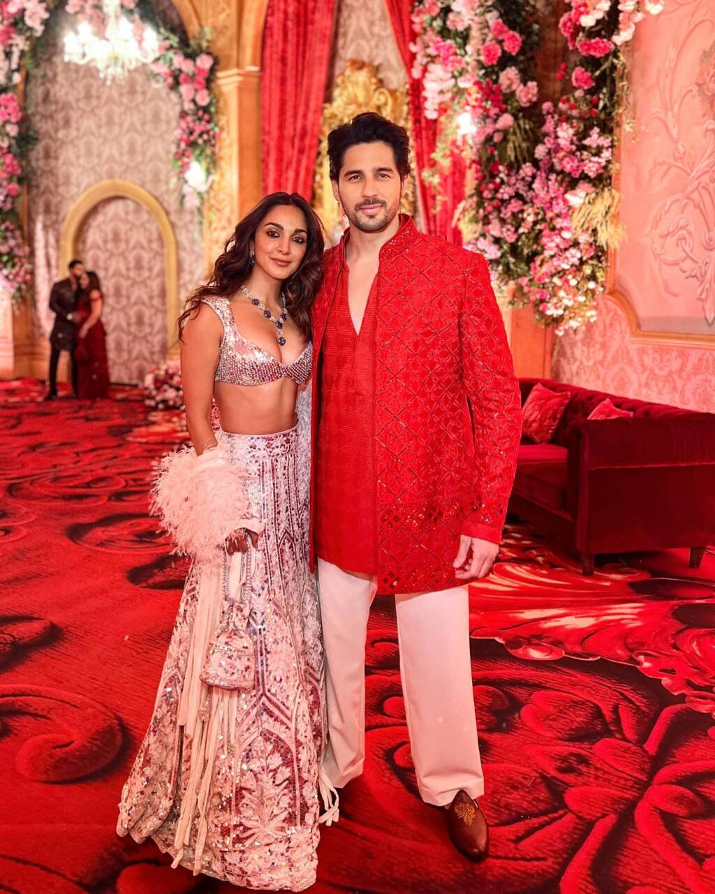 അനന്ത് അംബാനിയുടെ വിവാഹഘോഷ വേദിയിൽ നിന്നുള്ള ചിത്രങ്ങളാണ് സിദ്ധാർത്ഥ് പങ്കുവച്ചത്. വെള്ള ലഹങ്ക അണിഞ്ഞ് അതീവ സുന്ദരിയായെത്തിയ കിയാരയെ ചേർത്ത് പിടിച്ച് നിൽക്കുന്ന ചിത്രമാണ് സിദ്ധാർത്ഥ് പങ്കുവച്ചത്. ചുവന്ന നിറത്തിലുള്ള കുർത്തയാണ് സിദ്ധാർത്ഥിന്റെ വേഷം. റെഡ് കാർപെറ്റിൽ നിൽക്കുന്ന ഇരുവരുടെയും ചിത്രങ്ങൾ സമൂഹമാദ്ധ്യമങ്ങളിൽ ശ്രദ്ധേയമാകുകയാണ്. വിവിധ തരം പൂക്കൾകൊണ്ട് അലങ്കരിച്ചിരിക്കുന്ന വേദിയും ചിത്രത്തിൽ കാണാം.