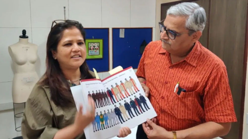 കോട്ടൺ തുണിയിലാണ് വസ്ത്രങ്ങൾ തയ്യാറാക്കിയിട്ടുള്ളത്. 70 വ്യത്യസ്ത ഡിസൈനുകളിൽ നിന്നാണ് നിലവിലുള്ള യൂണിഫോം തിരഞ്ഞെടുത്തത്. ആകാശത്തേയും സമാധാനത്തേയും സൂചിപ്പിക്കുന്ന നിറമാണ് നീല നിറം. ഊർജ്ജസ്വലത, സമാധാനം, സ്ഥിരോത്സാഹം തുടങ്ങിയവയെ അടയാളപ്പെടുത്തുന്ന നിറം കൂടിയാണിത്. നിറങ്ങളെ സന്തുലിതമാക്കാനാണ് കടുത്ത നീലയ്‌ക്കൊപ്പം ഇളം നിറത്തിലുള്ള നീല നിറവും തിരശ്ചീനമായ വരകളും നൽകിയെതന്ന് ഡിസൈനർ ടീമിനെ നയിച്ച പ്രൊഫ. ജോണലി ബാജ്പേയി പറഞ്ഞു.