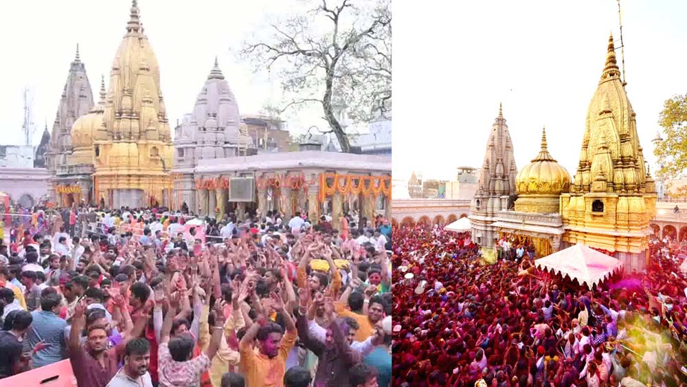 ലക്നൗ: ഉത്തർപ്രദേശിലെ വാരാണസി ശ്രീ കാശി വിശ്വനാഥ ക്ഷേത്രത്തിൽ ഹോളി ആഘോഷങ്ങൾക്ക് തുടക്കം കുറിച്ച് ഭക്തർ. നിരവധി പേരാണ് ആഘോഷത്തിൽ പങ്കെടുക്കാനായി ക്ഷേത്രത്തിലെത്തിയത്. ഢോൽ മുഴക്കിയും വർണങ്ങൾ വാരിയെറിഞ്ഞും ഭക്തർ ഹോളി ആഘോഷങ്ങൾക്ക് തുടക്കമിട്ടു. രാജ്യത്തിന്റെ വിവിധ ഭാഗങ്ങളിൽ നിന്നുമുള്ള ഭക്തർ ആഘോഷത്തിൽ പങ്കെടുക്കാനായി ക്ഷേത്രത്തിലെത്തി.
