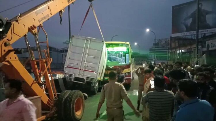 തൃശൂർ ഭാഗത്ത് നിന്നുവന്ന കെഎസ്ആർടിസി ബസ് എതിർ ദിശയിൽ നിന്നുവന്ന പിക്കപ്പ് വാനുമായി കൂട്ടിയിടിക്കുകയായിരുന്നു. വാഹനങ്ങൾ കൂട്ടിയിടിച്ചതിന് പിന്നാലെ രാജേന്ദ്രൻ വാഹനത്തിൽ കുടുങ്ങിയതാണ് മരണ കാരണം. അഗ്നിശമന സേന സ്ഥലത്തെത്തിയാണ് രാജേന്ദ്രനെ പുറത്തെടുത്തത്. പരിക്കേറ്റ മറ്റ് യാത്രക്കാരെ ആശുപത്രിയിലേക്ക് മാറ്റിയിട്ടുണ്ട്.