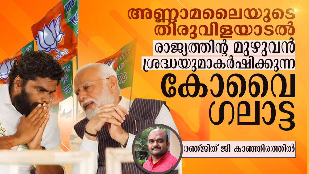 തമിഴകത്തിന് ഇനി കെ അണ്ണാമലൈയുടെ തിരുവിളയാടൽ ദിനങ്ങളാണ്. അണ്ണാമലൈയുടെ പ്രവർത്തന ശൈലി കാരണം ‘സിംഹം അണ്ണാ’ എന്ന് വിളിച്ചിരുന്നത് അക്ഷരാർത്ഥത്തിൽ ശരിയാണെന്നു കാണാൻ കഴിയും. ആ തേരോട്ടത്തിനു കാത്തിരിക്കുകയാണ് തമിഴകവും ഭാരതവും. രാജ്യത്തിന്റെ മുഴുവൻ ശ്രദ്ധയുമാകർഷിക്കുന്ന “കോവൈ ഗലാട്ട”യിലെ കെ അണ്ണാമലൈയുടെ തിരുവിളയാടൽ നമുക്കും കണ്ടിരിക്കാം.