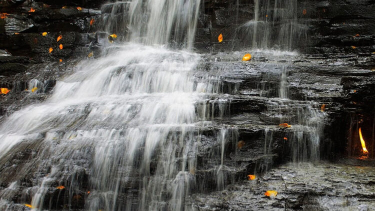 ന്യൂയോർക്കിലെ ചെസ്നട്ട് ഉദ്യാനത്തിൽ സ്ഥിതി ചെയ്യുന്ന എറ്റേണൽ ഫ്ളെയിം ഓഫ് വാട്ടർ ഫാൾസ് എന്ന അറിയപ്പെടുന്ന വെള്ളച്ചാട്ടമാണത്. വെള്ളച്ചാട്ടത്തിൽ ഒരു നിത്യജ്വാല കാണപ്പെട്ടതിനാലാണ് ഇതിനെ എറ്റേണൽ ഫ്ളെയിം ഓഫ് വാട്ടർ ഫാൾസ് എന്ന് വിളിക്കുന്നത്. വെളളച്ചാട്ടത്തിൽ എങ്ങനെ തീ എന്നായിരിക്കും. അതെ! വെള്ളച്ചാട്ടത്തിൽ ജ്വലിച്ചു നിൽക്കുന്ന തീനാളനാളമാണ് ചെസ്നട്ട് ഉദ്യാനത്തിലെ പ്രധാന ആകർഷണം.
