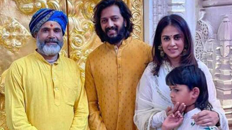 ലക്നൗ: അയോദ്ധ്യാ രാമക്ഷേത്രത്തിൽ ദർശനം നടത്തി ബോളിവുഡ് താരം റിതേഷ് ദേശ്മുഖും കുടുംബവും. ഇന്നലെ വൈകിട്ടാണ് താരദമ്പതിമാർ രാമക്ഷേത്രത്തിൽ ദർശനം നടത്തിയത്. ക്ഷേത്ര ദർശനത്തിന്റെ ചിത്രങ്ങൾ സമൂഹമാദ്ധ്യമങ്ങളിൽ വൈറലാവുകയാണ്. ഇതിൽ ക്ഷേത്ര പൂജാരി സന്തോഷ് കുമാർ തിവാരിക്കൊപ്പമുള്ള ചിത്രങ്ങളും പുറത്തുവന്നിട്ടുണ്ട്.