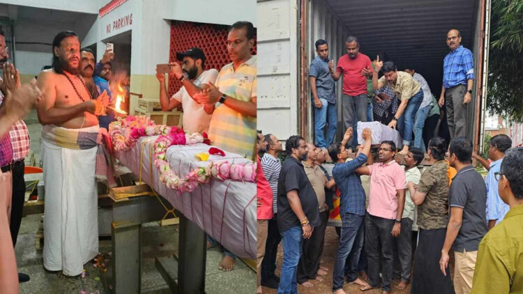 ആഫ്രിക്കൻ ഭൂഖണ്ഡത്തിലെ ആദ്യത്തെ അയ്യപ്പ ക്ഷേത്രം ധ്വജ പ്രതിഷ്ഠക്കൊരുങ്ങുന്നു; തൈലാധിവാസം കഴിഞ്ഞ കൊടിമരം എത്തിച്ചേർന്നു