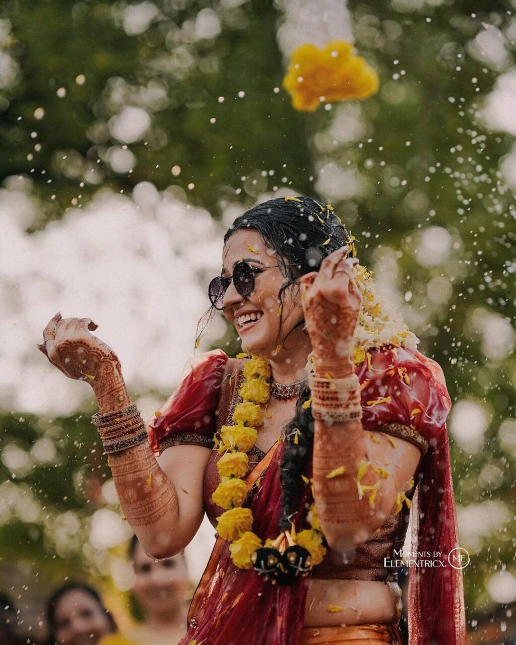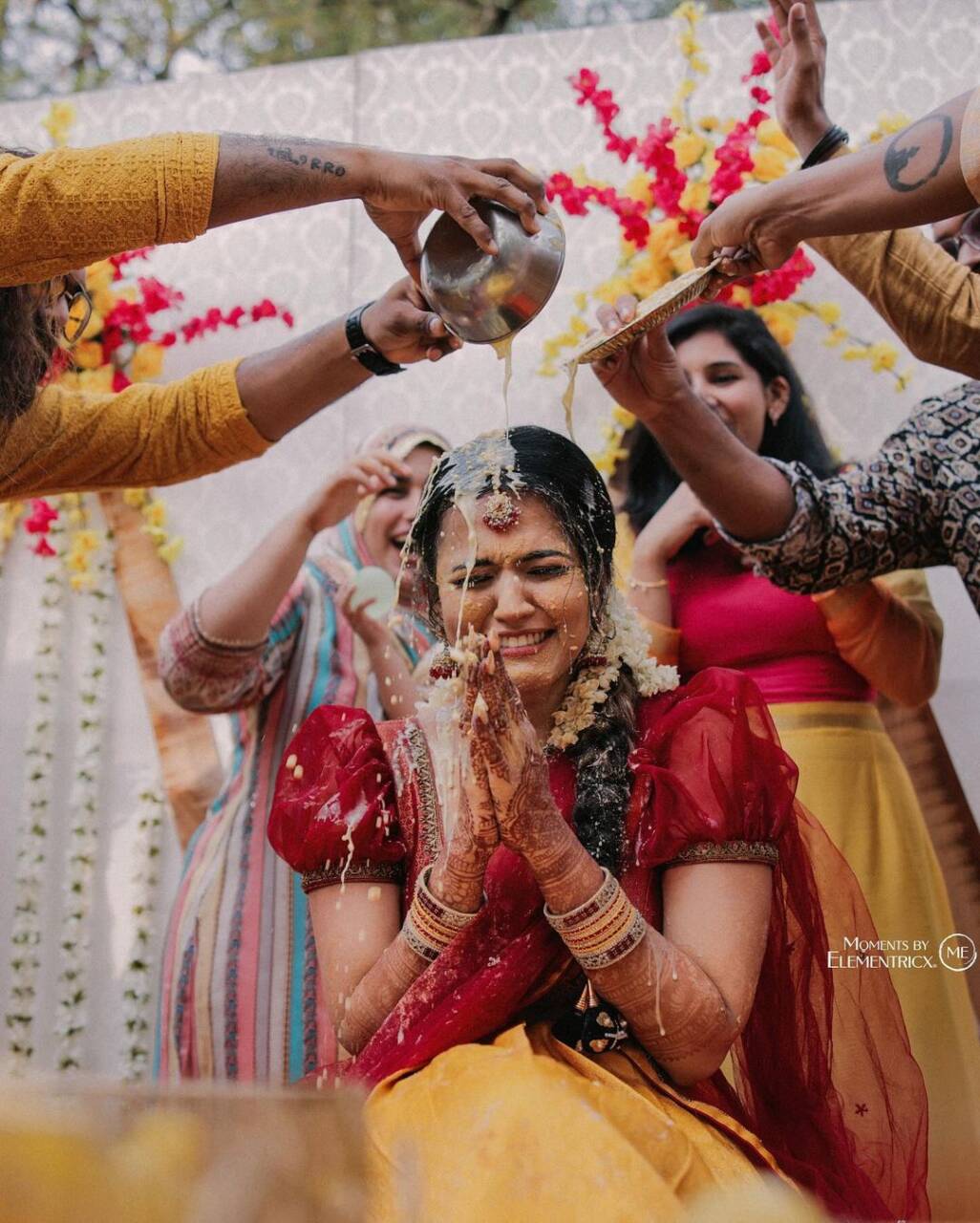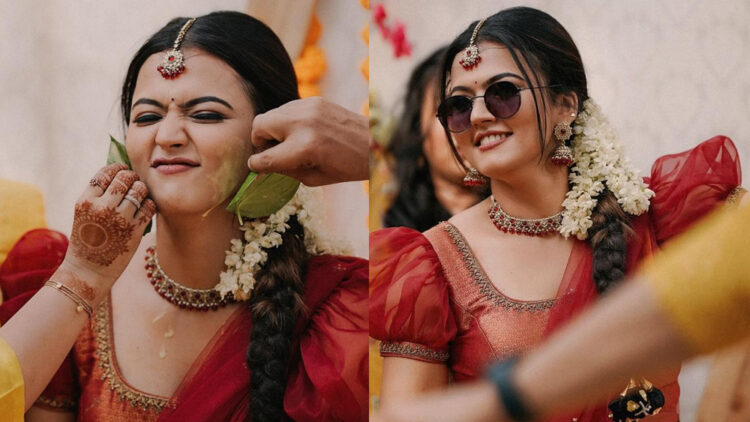 ഒപ്പം ബന്ധുക്കൾ മുഖത്ത് മഞ്ഞൾ തേക്കുന്നതിന്റെയും മഞ്ഞൾ വെള്ളം ഒഴിക്കുന്നതിന്റെ ചിത്രങ്ങളും ഇക്കൂട്ടത്തിൽ ഉണ്ട്.