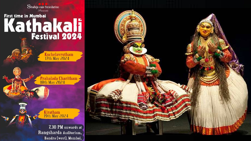 കുചേലവൃത്തം, പ്രഹ്ലാദചരിതം, കിരാതം എന്നീ കഥകളാണ് അവതരിപ്പിക്കുക. മെയ് 17, 18,19 ദിവസങ്ങളിലാണ് പരിപാടി. വൈകുന്നേരം 7.30 മുതൽ ബാന്ദ്രയിലെ രംഗ്ശാരദ ഓഡിറ്റോറിയത്തിലാണ് കഥകളി അരങ്ങേറുക. ടിക്കറ്റുകൾക്ക് 9892248631 എന്ന നമ്പറിൽ ബന്ധപ്പെടാവുന്നതാണ്.