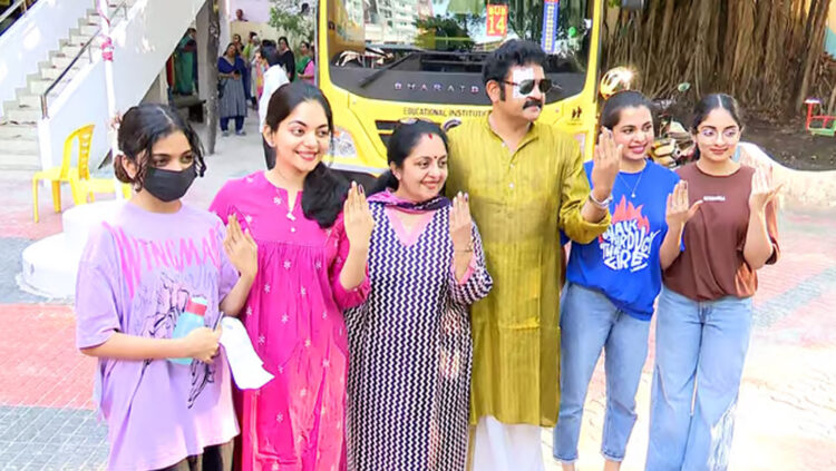 തിരുവനന്തപുരം: വോട്ട് രേഖപ്പെടുത്തി കൊല്ലത്തെ എൻഡിഎ സ്ഥാനാർത്ഥി ജി കൃഷ്ണകുമാർ. കാഞ്ഞിരംപാറ എൽപി സ്കൂളിലെത്തിയാണ് വോട്ട് രേഖപ്പെടുത്തിയത്. ഭാര്യ സിന്ധു കൃഷ്ണകുമാർ, മക്കളായ അഹാന, ദിയ, ഹൻസിക, ഇഷാന എന്നിവർക്കൊപ്പമാണ് കൃഷ്ണകുമാർ സമ്മതിദാനാവകാശം വിനിയോഗിക്കാൻ എത്തിയത്. രാജ്യത്ത് ഇൻഡി മുന്നണിയും എൻഡിഎയും തമ്മിലുള്ള മത്സരമാണ് നടക്കുന്നതെന്ന് അദ്ദേഹം മാദ്ധ്യമങ്ങളോട് പ്രതികരിച്ചു.