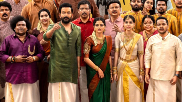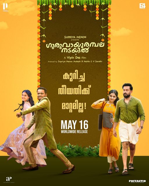 പൃഥ്വിരാജും ബേസിൽ ജോസഫും പ്രധാന വേഷത്തിലെത്തുന്ന ചിത്രമാണ് ‘ഗുരുവായൂരമ്പല നടയിൽ’. ഒരു കല്യാണം നടത്തുന്നതിനിടെയിലുള്ള കോലാഹലങ്ങളാണ് സിനിമ പ്രേക്ഷകർക്ക് മുന്നിലേക്കെത്തിക്കുന്നത്. കുടുംബ പ്രേക്ഷകരെ കയ്യിലെടുക്കാനാണ് സംഘത്തിന്റെ വരവെന്ന് മുമ്പ് പുറത്തുവന്ന ടീസറുൾപ്പെടെയുള്ള അപ്ഡേഷനിൽ നിന്ന് വ്യക്തമാണ്. ചിത്രത്തിന്റെ പുതിയ പോസ്റ്ററാണ് അണിയറപ്രവർത്തകർ ഇപ്പോൾ പങ്കുവക്കുന്നത്. പൃഥ്വിരാജിന്റെ ഫെയ്സ്ബുക്ക് പേജിലൂടെയാണ് പോസ്റ്റർ പങ്കുവച്ചത്.