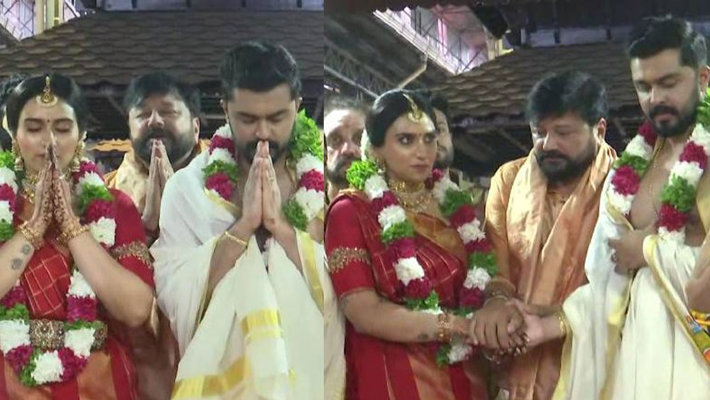 തമിഴ്നാടാൻ സ്റ്റൈലിൽ ചുവന്ന പട്ടുസാരിയാണ് മാളവിക അണിഞ്ഞിരുന്നത്. കസവ് മുണ്ടും മേൽമുണ്ടുമായിരുന്നു നവനീതിന്റെ വേഷം. തൃശൂർ ഹയാത്ത് ഹോട്ടലിൽ ഇന്ന് രാവിലെ 10.30 മുതലാണ് വിവാഹ വിരുന്ന്.