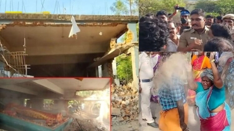 കൈയേറ്റങ്ങൾ നീക്കം ചെയ്യാനുള്ള കോടതി ഉത്തരവിനെ പിൻപറ്റിയാണ് നടപടി. സ്ത്രീകളും കുട്ടികളും അടങ്ങുന്ന ഭക്തരുടെ എതിർപ്പ് വകവയ്ക്കാതെ നൂറിലധികം പോലീസുകാരെ വിന്യസിച്ചിയിരുന്നു ക്ഷേത്രം ഇടിച്ചിട്ടത്.