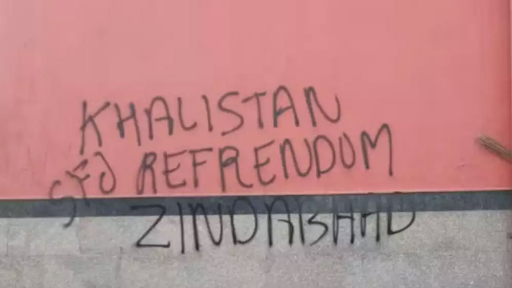 ന്യൂയോർക്ക് കേന്ദ്രീകരിച്ച് പ്രവർത്തിക്കുന്ന ഖലിസ്ഥാൻ ഭീകരൻ ഗുർപത്വന്ത് സിംഗ് പന്നുവിന്റെ അനുയായികളാണ് ചുവരെഴുത്തിന് പിന്നിലെന്നാണ് വിവരം. ചുവരെഴുത്ത് നടത്തിയത്. പിന്നാലെ ഇതിന്റെ ചിത്രങ്ങൾ ഇയാൾക്ക് അയച്ചുകൊടുത്തതായി കണ്ടെത്തിയെന്നും പഞ്ചാബ് ഡിജിപി ഗൗരവ് യാദവ് എക്സിലൂടെ അറിയിച്ചു.