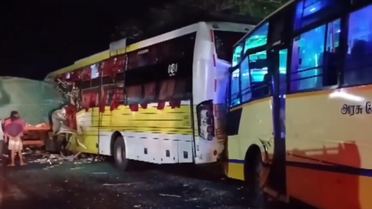 കണ്ടെയ്നറിന്റെ പിന്നിലായി വന്ന ബസുകളും ലോറികളും കൂട്ടിയിടിച്ചത് അപകടത്തിന്റെ ആഘാതം വർദ്ധിപ്പിച്ചു. അപകടത്തിൽ 20 ഓളം പേർക്ക് പരിക്കേറ്റിട്ടുണ്ട്. കാർ ഡ്രൈവറായ ശരവണൻ ഉറങ്ങിപ്പോയതാകാം അപകട കാരണമെന്നാണ് പ്രാഥമിക നി​​ഗമനം. സംഭവത്തിൽ പൊലീസ് കേസെടുത്ത് അന്വേഷണം ആരംഭിച്ചിട്ടുണ്ട്. സിസിടിവി ദൃശ്യങ്ങൾ പരിശോധിച്ചുവരികയാണ്.