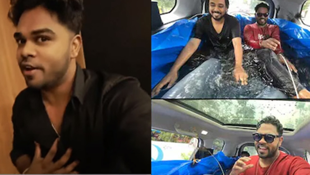 കഴിഞ്ഞ ദിവസമാണ് ഓടിക്കൊണ്ടിരുന്ന ടാറ്റ സഫാരി കാറിൽ ടാർപ്പോളിൻ കൊണ്ട് ‘ആവേശം’ സിനിമാ മോഡൽ സ്വിമ്മിംഗ് പൂളുണ്ടാക്കി കുളിക്കുന്നതിന്റെ ദൃശ്യം സഞ്ജു ടെക്കി യൂട്യൂബ് ചാനലിലൂടെ പുറത്തുവിട്ടത്. തൊട്ടുപിന്നാലെ സഞ്ജുവിനെ മോട്ടോർ വാഹന വകുപ്പ് കസ്റ്റഡിയിലെടുക്കുകയും വാഹനം ഓടിച്ച യുവാവിന്റെ ലൈസൻസ് റദ്ദാക്കുകയും ചെയ്തിരുന്നു. കാറിന്റെ രജിസ്‌ട്രേഷൻ റദ്ദാക്കുന്നതിലേക്കും മോട്ടോർ വാഹന വകുപ്പ് കടന്നിരുന്നു.