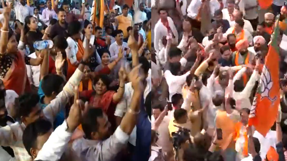 നഗരത്തിലുടനീളം മധുരം വിതരണം ചെയ്തും പടക്കം പൊട്ടിച്ചും ബിജെപി പ്രവർത്തകർ ആഘോഷിക്കുകയാണ്. മൂന്നാം തവണയും പ്രധാനമന്ത്രി നരേന്ദ്രമോദി അധികാരത്തിലെത്തുമെന്ന ശുഭപ്രതീക്ഷയിലാണ് ബിജെപി. 293 സീറ്റുകൾ നേടി അധികാരം നിലനിർത്താനൊരുങ്ങുകയാണ് എൻഡിഎ സഖ്യം.