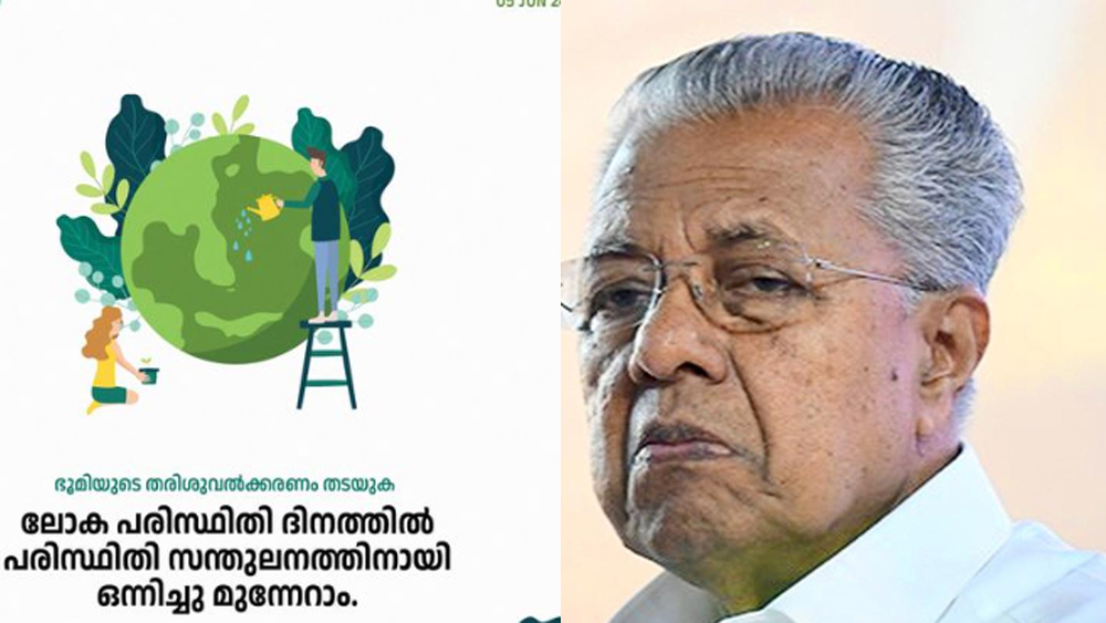 ”ലോക പരിസ്ഥിതി ദിനമാണിന്ന്. വരൾച്ചയും തരിശുവൽക്കരണവും തടയാനായി ഭൂമിയുടെ ഫലഭൂയിഷ്ഠത വർദ്ധിപ്പിക്കണമെന്നതാണ് ഈ വർഷത്തെ പരിസ്ഥിതി ദിന സന്ദേശം. നിയോലിബറൽ സാമ്പത്തിക ക്രമത്തിന്റെ ഭാഗമായി ഭൂമി വെട്ടിപ്പിടിക്കുന്നതും സ്വകാര്യമൂലധന ശക്തികളുടെ താല്പര്യങ്ങൾക്ക് വേണ്ടി അനധികൃതമായി കൈപ്പിടിയിൽ ഒതുക്കുന്നതും കാലാവസ്ഥാ വ്യതിയാനവുമാണ് ഭൂമിയുടെ വലിയ രീതിയിലുള്ള തരിശുവൽക്കരണത്തിലേക്ക് നയിക്കുന്നത്..” എന്ന് തുടങ്ങുന്ന പോസ്റ്റാണ് മുഖ്യമന്ത്രി ഫേസ്ബുക്കിൽ പങ്കുവച്ചത്.