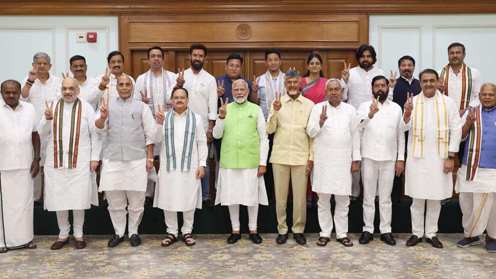 സർക്കാർ രൂപീകരണത്തിന് അവകാശവാദമുന്നയിക്കാൻ നേതാക്കൾ വെള്ളിയാഴ്ച രാഷ്‌ട്രപതിയെക്കാണാനും എൻഡിഎ യോഗത്തിൽ തീരുമാനമായി. ലോക്സഭാ തെരഞ്ഞെടുപ്പിൽ 292 സീറ്റുകൾ നേടിയാണ് എൻഡിഎ മൂനാം തവണയും അധികാരത്തിലേക്ക് വരുന്നത്. അതേസമയം മോദിയെ പ്രതിരോധിക്കാൻ പ്രധാന പാർട്ടികളെയെല്ലാം ഒപ്പം കൂട്ടി മുന്നിട്ടിറങ്ങിയ ഇൻഡി സഖ്യം 232 സീറ്റുകളിൽ ഒതുങ്ങി.