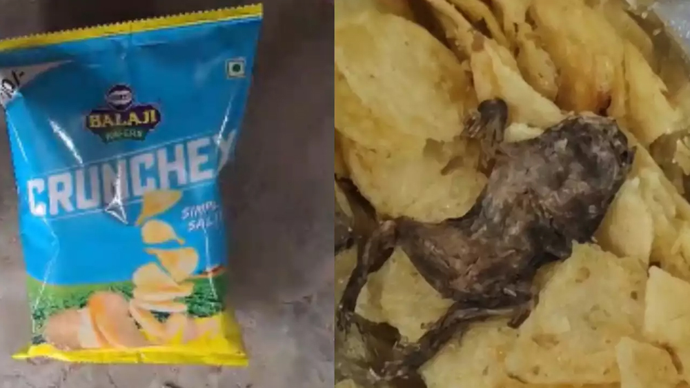 ജാംനഗർ സ്വദേശിയായ ജാസ്മിൻ പട്ടേലിനാണ് ദുരനുഭവം ഉണ്ടായത്. ബന്ധുവായ 9 വയസ്സുകാരിക്ക് വേണ്ടിയാണ് വേഫേഴ്സ് വാങ്ങിയത്. പാക്കറ്റിലെ പകുതി ചിപ്സ് കഴിച്ച് ശേഷമാണ് തവളയെ കണ്ണിൽപെട്ടത്. വാങ്ങിയ കടയിലും കസ്റ്റമർ കെയറിലും പരാതിപ്പെട്ടെങ്കിലും കാര്യമായ പ്രതികരണം ലഭിച്ചില്ലെന്ന് ജാസ്മിൻ പറയുന്നു. തുടർന്ന് ഭക്ഷ്യ വകുപ്പിനെ വിവരമറിയിക്കുകയായിരുന്നു.