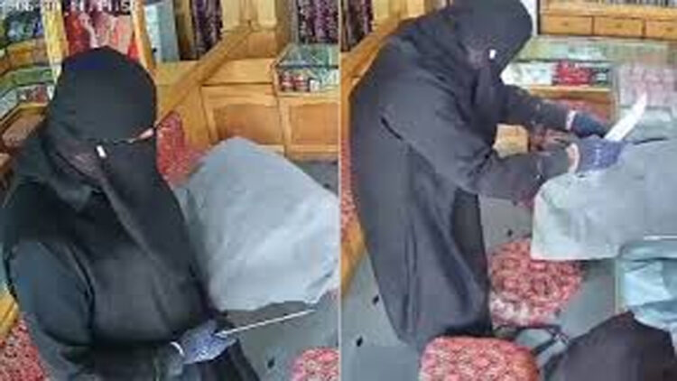 കഴിഞ്ഞ ദിവസം ഉച്ചയോടെയാണ് മോട്ടോർ സൈക്കിളിൽ എത്തിയ രണ്ട് പേർ ജ്വല്ലറിൽ അതിക്രമിച്ച് കയറിയത്. മുഖം മറയ്ക്കാനായി ഒരാൾ ബുർഖയും മറ്റേയാൾ ഹെൽമെറ്റും ധരിച്ചിരുന്നു. ബുർഖ ധരിച്ചയാൾ ജ്വല്ലറിൽ കയറിയ ഉടനെ ശേഷറാമിന്റെ തോളിൽ ആഞ്ഞ് കുത്തി. ഇതേ സമയം ഇയാളുടെ കൂട്ടാളി സഞ്ചിയിൽ ആഭരണങ്ങളും പണവും വാരിയിടുന്നതും ദൃശ്യങ്ങളിൽ വ്യക്തമാണ്.