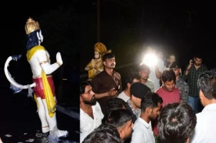 രാമായണ പാർക്കിൽ സ്ഥാപിച്ചിരുന്ന ഹനുമാൻ ശില്പം മദ്രസ വിദ്യാർത്ഥികൾ തകർത്തതായി പരാതി ; പ്രദേശത്ത് പ്രതിഷേധം