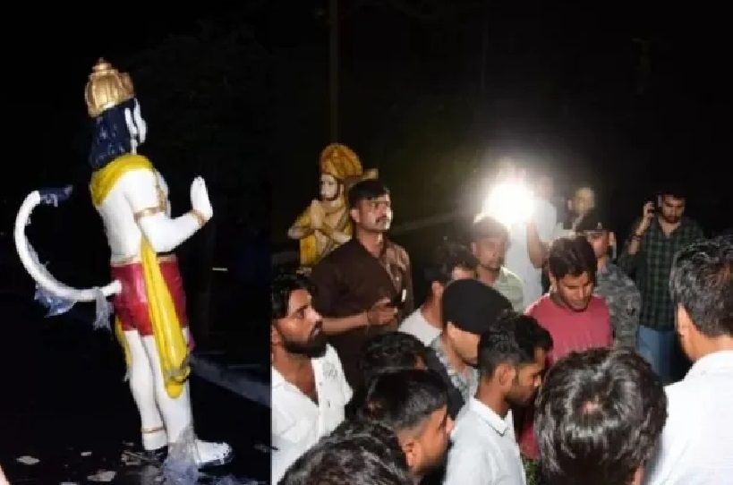 രാമായണ പാർക്കിൽ സ്ഥാപിച്ചിരുന്ന ഹനുമാൻ ശില്പം മദ്രസ വിദ്യാർത്ഥികൾ തകർത്തതായി പരാതി ; പ്രദേശത്ത് പ്രതിഷേധം