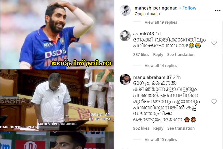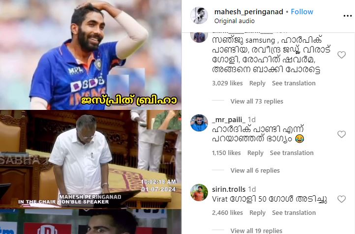 രോഹിത് ശർമ്മ OK, ഈ വിരാട് ഗോളിയും, ബ്രിഹായും ഒക്കെ ആരാ മുക്കിയ, നോക്കി വായിക്കാനെങ്കിലും പഠിക്കെടോ മരവാഴേ. വിരാട് ഗോളി, ജസ്പ്രിത് ബൃഹ, രോഹിത് ഷവർമ, രവീന്ദ്ര ജഡ്ജി, ശിവം ദുബായ്, സഞ്ജു സാംസങ്ങ്, ഹാർപിക്ക് പാണ്ടി , അക്സർ പാട്ടി, കുലം ദീപം യാദവൻ, അർഷദീപ് സിങ്കം, ഇതൊരു നല്ല ടീമായിരുന്നു…2007 ൽ മഹേന്ദ്ര സിങ്കം തോണി കപ്പ് നേടിയിരുന്നു എന്നിങ്ങനെ മുഖ്യമന്ത്രിയെ പരിഹസിച്ചു കൊണ്ടുള്ള കമന്റുകളാണ് ട്രോളുകളിൽ ആരാധകർ പങ്കുവയ്ക്കുന്നത്.