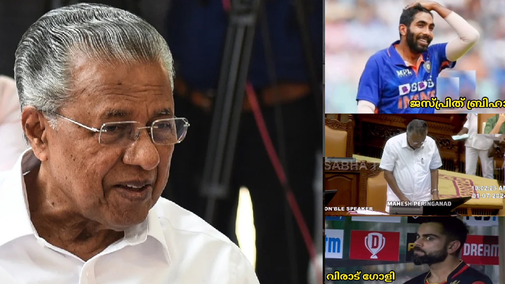 ”ലോകകിരീടം നേടിയ ഇന്ത്യൻ ടീമിനെ നിയമസഭയിൽ പ്രശംസിച്ചിരുന്നു. ടി20 ലോകകപ്പ് നേടിയ ഇന്ത്യൻ ക്രിക്കറ്റ് ടീമിന് ഹൃദയം നിറഞ്ഞ അഭിനന്ദനങ്ങൾ. രാജ്യത്തിനാകെ അഭിമാനവും അത്യാഹ്ളാദവും പകർന്ന നേട്ടത്തിൽ ഈ സഭയും പങ്കുചേരുന്നു. കളിയുടെ എല്ലാ മേഖലയിലും മിടുക്കരായ താരങ്ങൾ നമുക്കുണ്ട്. അവരുടെ കഠിനാധ്വാനത്തിന്റെയും തികഞ്ഞ ആത്മവിശ്വാസത്തിന്റെയും ഫലമാണ് ഈ കിരീടനേട്ടം. രോഹിത് ശർമ്മ, വിരാട് ഗോളി തുടങ്ങിയ പരിചയസമ്പന്നരായ താരങ്ങളും യുവതാരങ്ങളും എല്ലാ അർത്ഥത്തിലും അർഹിച്ച വിജയമാണ് നേടിയത്. ജസ്പ്രീത് ബിഹ്രയുടെ നേതൃത്വത്തിലുള്ള ബൗളർമാരുടെ പ്രകടനം മികച്ചു നിന്നു. ടീമിന്റെ പരിശീലകൻ രാഹുൽ ദ്രാവിഡിനെയും എടുത്ത് പറയണം. മലയാളികളുടെ പ്രിയപ്പെട്ട താരം സഞ്ജുവിന് കളിക്കാൻ അവസരം ലഭിച്ചില്ലെങ്കിലും ടീമിലെ അദ്ദേഹത്തിന്റെ സാന്നിധ്യം സംസ്ഥാനത്തിന് അഭിമാനമാണ്’.- മുഖ്യമന്ത്രി സഭയിൽ പറഞ്ഞു.