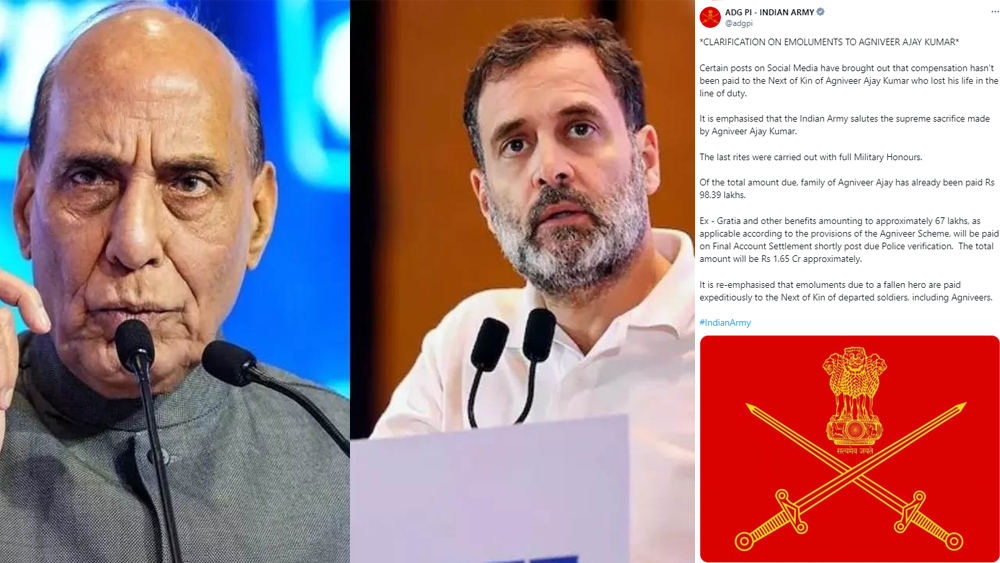 വീരമൃത്യു വരിച്ച അഗ്നിവീറുകളുടെ കുടുംബത്തിന് ധനസഹായം നൽകിയെന്ന പ്രതിരോധമന്ത്രിയുടെ പ്രസ്താവന കള്ളമാണെന്ന് നേരത്തെ ലോക്സഭയിൽ രാഹുൽ പറഞ്ഞിരുന്നു. പാർലമെന്റിനെ തെറ്റിദ്ധരിപ്പിച്ചതിൽ പ്രതിരോധമന്ത്രി രാജ്യത്തോടും സൈന്യത്തോടും അജയ് കുമാറിന്റെ കുടുംബത്തോടും മാപ്പുപറയണമെന്ന് രാഹുൽ ആവശ്യപ്പെട്ടിരുന്നു. പിന്നാലെയാണ് സൈന്യത്തിന്റെ പ്രതികരണം.