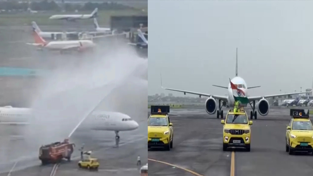 മുംബൈ: ഡൽഹിയിൽ നിന്ന് മുംബൈയിലെത്തിയ ടി20 ലോകകപ്പ് ജേതാക്കളായ ടീം ഇന്ത്യക്ക് വാട്ടർ സല്യൂട്ട് ഒരുക്കി മുംബൈ വിമാനത്താവളം. ഇതിന്റെ വീഡിയോ സോഷ്യൽ മീഡിയ കീഴടക്കി. സീനിയര്‍ താരങ്ങളായ വിരാട് കോലിക്കും രോഹിത് ശര്‍മയ്‌ക്കും എയര്‍ലൈന്‍ വിസ്താര ആദരം നല്‍കിയതും ശ്രദ്ധയാകർഷിച്ചിരുന്നു. വിമാനത്താവളത്തിലെ അഗ്നിശമനസേനാ വിഭാഗമാണ് വാട്ടർ സല്യൂട്ട് നൽകിയത്. ഇന്ത്യൻ പതാകയും വഹിച്ച് ഒരു വാഹനം അകമ്പടി സേവിച്ചു.