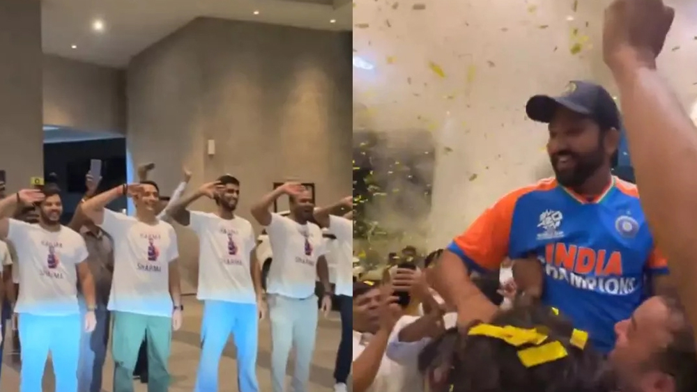 Tags: rohit sharmaWorld ChampionwelcomingGrand SaluteCustomised T-shirtChildhood Friends