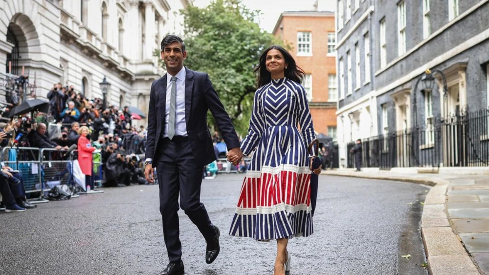 ലണ്ടൻ: ബ്രിട്ടൺ ഭരിച്ച ഇന്ത്യൻ വംശജനെന്ന ഖ്യാതിയോടെയായിരുന്നു ഋഷി സുനക് പടിയിറങ്ങിയത്. പ്രധാനമന്ത്രി പദത്തിൽ നിന്ന് ചുമതലയൊഴിയുന്ന വേളയിൽ വിശ്വപ്രസിദ്ധമായ 10 ഡൗണിംഗ് സ്ട്രീറ്റിൽ അദ്ദേഹം അവസാന പ്രഭാഷണം നടത്തിയിരുന്നു. പ്രിയതമ അക്ഷതാ മൂർത്തിയെ അരികിൽ നിർത്തിയായിരുന്നു സുനക് രാജ്യത്തെ അഭിസംബോധന ചെയ്തത്. ഇതിന്റെ വീഡിയോ ദൃശ്യങ്ങൾ പുറത്തുവന്നപ്പോൾ അക്ഷത ധരിച്ചുവന്ന വസ്ത്രം പോലും വലിയ ചർച്ചയായി മാറി.