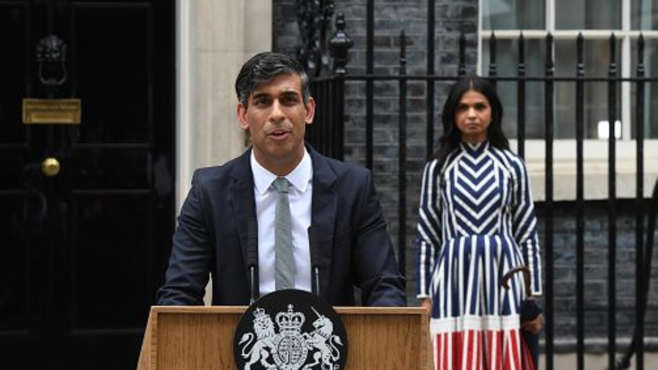 ഇംഗ്ലണ്ടിൽ ഭരണമാറ്റം സംഭവിക്കുന്ന ചരിത്രനിമിഷം.. പ്രധാനമന്ത്രി സ്ഥാനത്ത് നിന്ന് ഭർത്താവ് പടിയിറങ്ങുന്നു.. അദ്ദേഹത്തിന്റെ ഭരണമവസാനിക്കുന്ന വേളയിലെ നിർണായക പ്രസംഗം. തൊട്ടുപിറകിലായി നിന്നിരുന്ന അക്ഷത ധരിച്ചത് രാജ്യത്തിന്റെ പതാകയെ അനുസ്മരിപ്പിക്കുന്ന വസ്ത്രം.