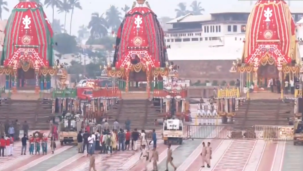 ആയിരക്കണക്കിന് ഭക്തരുടെ സാന്നിധ്യത്തിൽ രാവിലെ ഏഴ് മണിക്കാണ് രഥയാത്രക്ക് തുടക്കമായത്. നിരവധി പേർ യാത്രയിൽ പങ്കെടുക്കാനായി ക്ഷേത്ര സന്നിധിയിലെത്തി. ജഗന്നാഥന്റെ രഥത്തിനൊപ്പം മറ്റ് രണ്ട് രഥങ്ങൾ കൂടി യാത്രയിലുണ്ട്. രഥമണ്ഡപവും യാത്രാ പാതയും സ്വർണ ചൂൽ ഉപയോഗിച്ച് വൃത്തിയാക്കിയിരുന്നു.
