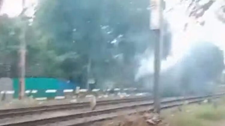 റെയിൽവേയുടെ വൈദ്യുതി ലൈനിൽ തട്ടി മരത്തിന് തീപിടിച്ചു. വലിയ ശബ്ദത്തോടെയാണ് മരം ഒടിഞ്ഞുവീണതെന്ന് ദൃക്സാക്ഷികൾ പറയുന്നു. എന്നാൽ അപായമൊന്നും ഉണ്ടായിട്ടില്ല. മഴയിൽ മരം നനഞ്ഞിരുന്നതിനാൽ തീ ആളിക്കത്തിയില്ല. ട്രെയിൻ ഗതാഗതം താത്കാലികമായി നിർത്തിവച്ചു.