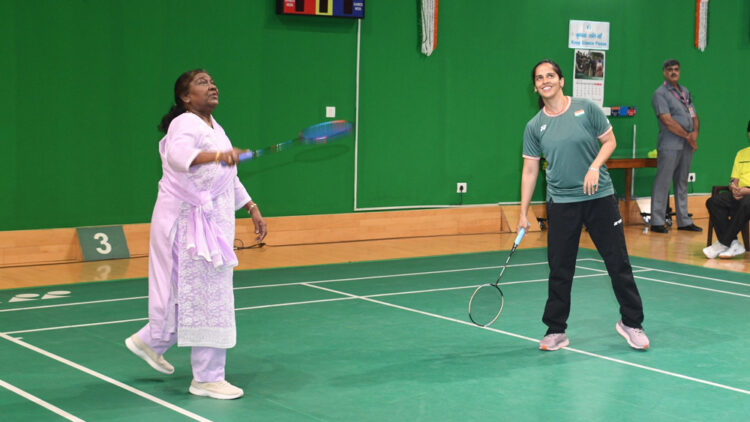 President Droupadi Murmu’s natural love for sports and games was seen when she played badminton with the much-celebrated player Ms. Saina Nehwal at the Badminton Court in Rashtrapati Bhavan. The President’s inspiring step is in keeping with India’s emergence as a badminton-power… pic.twitter.com/DGjRudbzSc
