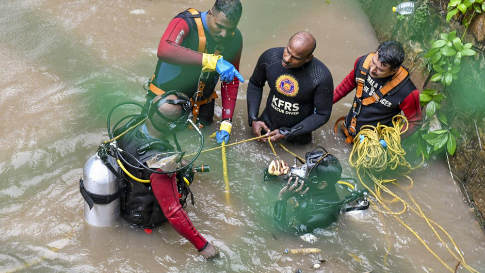 മാലിന്യകൂമ്പാരത്തിനിടയിലെ രക്ഷാപ്രവർത്തനം ദുഷ്കരമായതിനാൽ സ്കൂബാ സംഘം തെരച്ചിൽ അവസാനിപ്പിച്ചു. മാൻഹോളിലെ മാലിന്യം നീക്കിയതിന് ശേഷം തെരച്ചിൽ ആരംഭിക്കാനാണ് ദൗത്യസംഘത്തിന്റെ തീരുമാനം. മാൻഹോളിൽ ഇറങ്ങി മാലിന്യം നീക്കുന്നതിനായി റോബോട്ടിനെയാണ് ഉപയോഗിക്കുന്നത്. ടെക്നോ പാർക്കിലെ ജെൻ റോബോട്ടിക്സ് കമ്പനിയുടേതാണ് റോബോർട്ട്. ഇതിന്റെ പ്രവർത്തനം മോണിറ്റർ വഴി നിരീക്ഷിക്കാനുള്ള സംവിധാനമുണ്ട്.