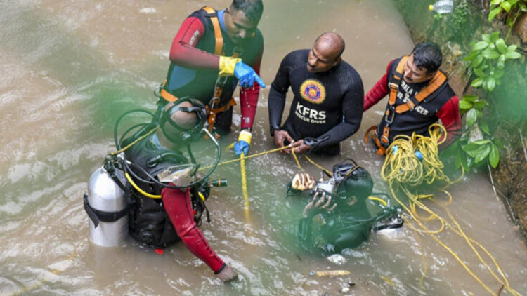 മാലിന്യ കൂമ്പാരത്തിനിടയിലെ രക്ഷാപ്രവർത്തനം ദുഷ്കരമായതിനാൽ സ്കൂബാ സംഘം ഇന്നലെ തിരച്ചിൽ അവസാനിപ്പിച്ചിരുന്നു. മാൻഹോളിലെ മാലിന്യം നീക്കിയതിന് ശേഷം തിരച്ചിൽ ആരംഭിക്കാനാണ് ദൗത്യസംഘത്തിന്റെ തീരുമാനം. മാൻഹോളിൽ ഇറങ്ങി മാലിന്യം നീക്കുന്നതിനായി റോബോട്ടിനെയാണ് ഉപയോഗിക്കുന്നത്.