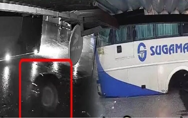 സ്വകാര്യ ബസ് കടന്നുപോകവേ പിൻവശത്തെ ടയറുകൾ ഊരി വാഹനത്തിൽ നിന്ന് വേർപെട്ട് റോഡിന്റെ മറുവശത്തേക്ക് പോകുകയായിരുന്നു . ഇത് സമീപത്തെ സിസിടിവിയിലും പതിഞ്ഞിരുന്നു. ബസ് കുറഞ്ഞ വേഗത്തിലായതിനാൽ ആളപായമുണ്ടായില്ല.