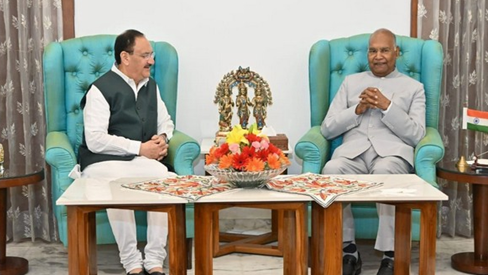 ന്യൂഡൽഹി: മുൻ രാഷ്ട്രപതി രാംനാഥ് കോവിന്ദിനെ സന്ദർശിച്ച് ബിജെപി ദേശീയ അധ്യക്ഷനും കേന്ദ്ര ആരോഗ്യമന്ത്രിയുമായ ജെ.പി നദ്ദ. ഡൽഹിയിലെ അദ്ദേഹത്തിന്റെ വസതിയിലെത്തിയാണ് നദ്ദ മുൻ രാഷ്ട്രപതിയെ സന്ദർശിച്ചത്.