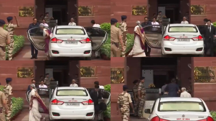 Finance Minister Nirmala Sitharaman reaches Ministry ahead of Union Budget presentation